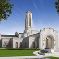 Installing stained-glass windows; stone cladding completed; landscaping and interior work progressing; construction estimated to be completed in mid- to late 2026 (the open house and dedication will take place several months after construction concludes)